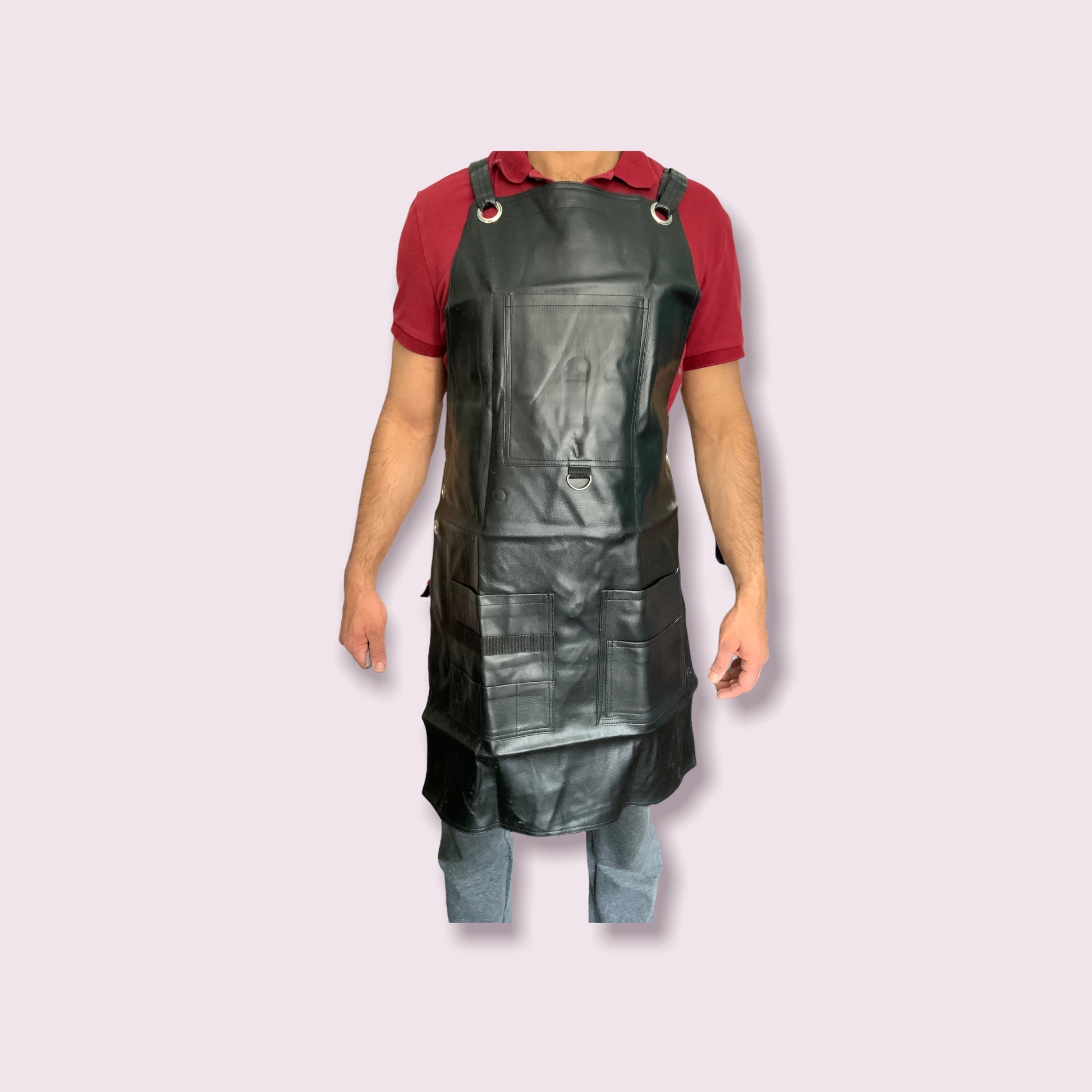 PU Leather Apron IKAS - With Pockets and Crossback Straps -23"WX33"L-Adjustable for Men and Women - Pro Chef, Barista, Barber, Woodworker, Shop, Bartender, Maker